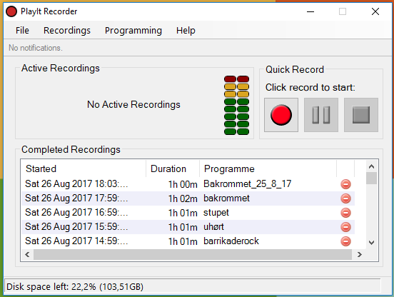 Start PlayIt ved å klikke på den røde sirkelen i verktøylinjen nederst til høyre på skjermen.