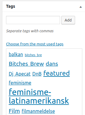 Tags er nøkkelord som gjør det lettere å søke seg fram til artikkelen din og som gjør at vi liste opp tematisk like innlegg. Her kan du gjerne velge flere og legge til nye.